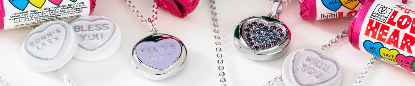 Discover the Exclusive Love Hearts jewellery collection. A beautifully handcrafted signature Jewellery range inspired by the iconic Love Heart Sweet confectioners, Swizzels Matlow. The Love Hearts jewellery collection has been exclusively designed and manufactured under licence by W Hamond Fine Jewellery, made available as a romantic gift for the very first time, which can be treasured for a lifetime by a loved one.