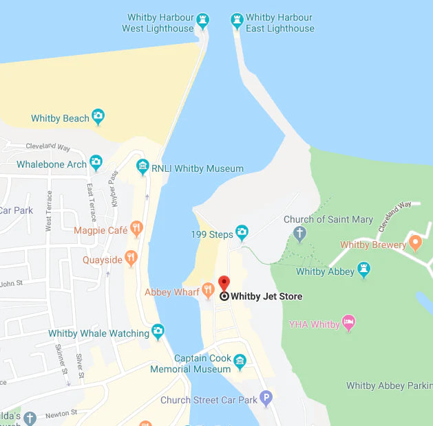 Whitby Jet Store, established in 2010, is a unique and welcoming jewellery store located on Whitby’s most historical cobbled Church Street. On arrival you will be greeted by friendly and well-informed staff that will assist you with a purchase, or simply enlighten you on the history of Whitby and its infamous gem stone. In store you will find elegant pieces of award-winning handcrafted jewellery ranging in a variation of diverse designs and gemstones including; Whitby Jet, Amber, Blue-John and Turquoise. Our jewellery is set in Sterling Silver and Gold and is of high-class quality. Not only do we offer a large selection of jewellery on hand, we also offer a bespoke service so you can get exactly what you desire.